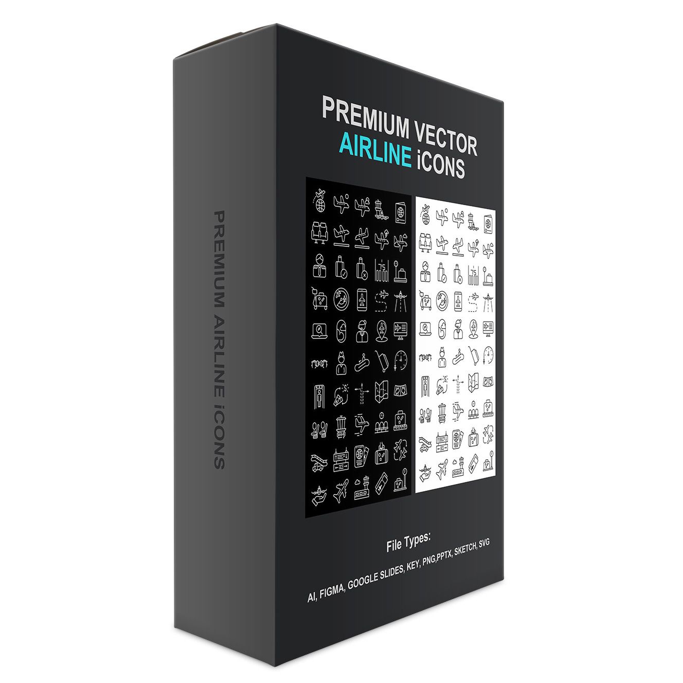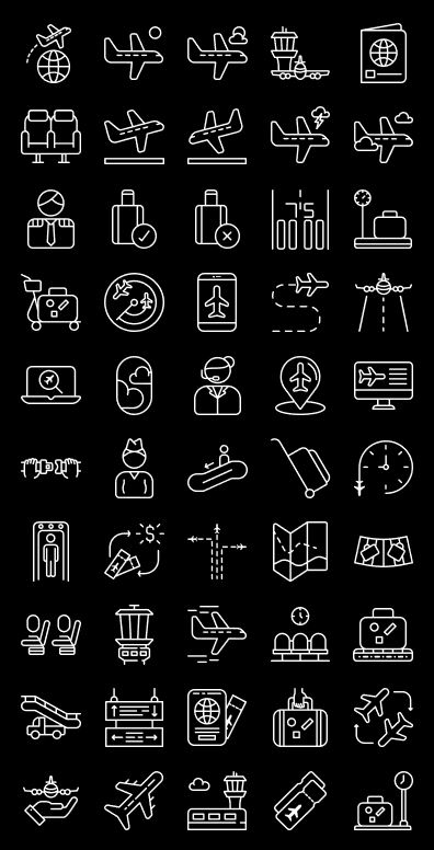 These premium vector Airline icons will help you design your website, flyers, social media posts, videos, banners, and much more. The files are supplied in different resolutions, as well as light and dark mode. You’ll save time and money when you download these premium quality icons. For personal use, or for your clients. Not for resale. Can not be used for trademarked or registered logos. File types: AI, FIGMA, GOOGLE SLIDES, KEY, PNG, PPTX, SKETCH, SVG.