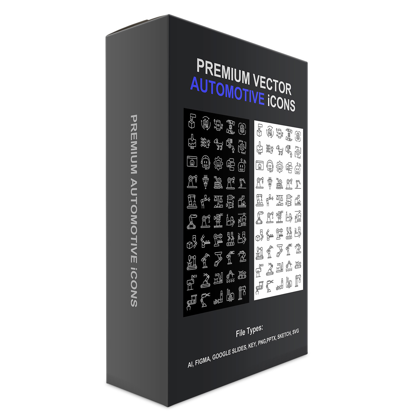 These premium vector Automotive (robotics) icons will help you design your website, flyers, social media posts, videos, banners, and much more. The files are supplied in different resolutions, as well as light and dark mode. You’ll save time and money when you download these premium quality icons. For personal use, or for your clients. Not for resale. Can not be used for trademarked or registered logos. File types: AI, FIGMA, GOOGLE SLIDES, KEY, PNG, PPTX, SKETCH, SVG.